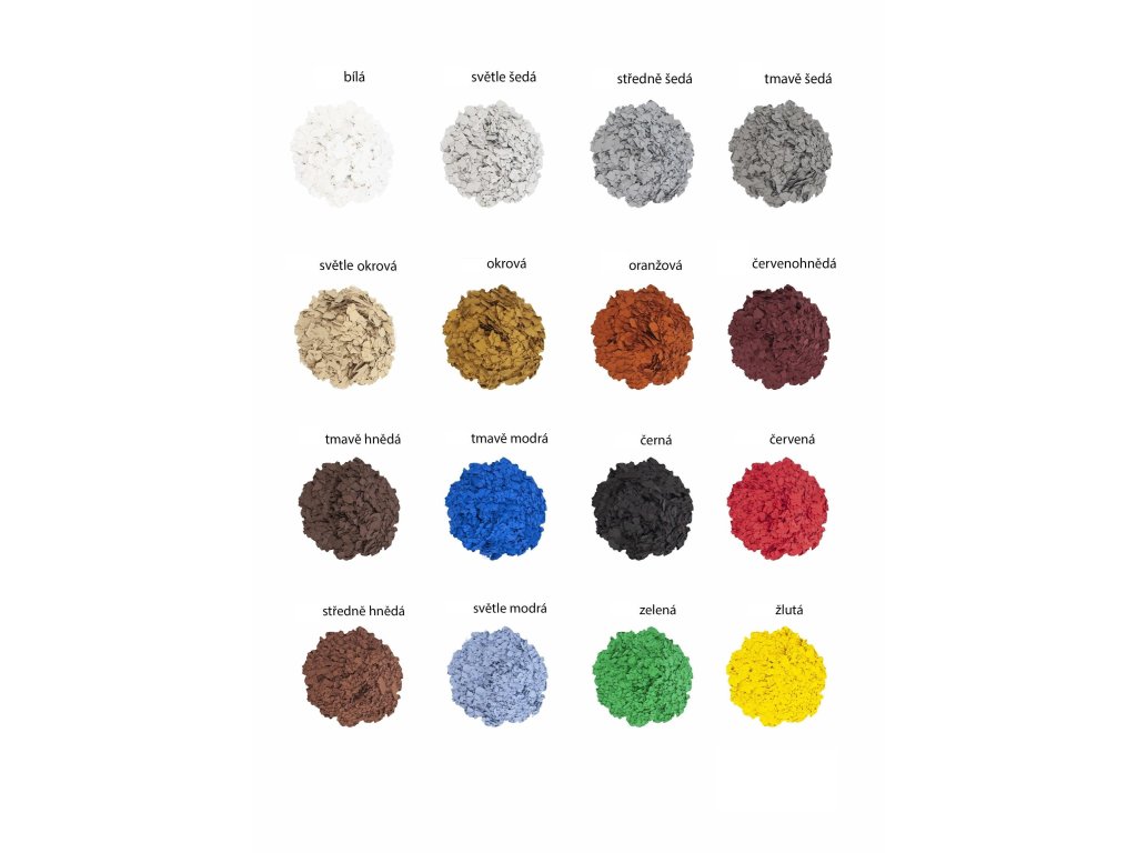 Použití: Barevné akrylátové lupínky (chipsy) slouží k dekorování privátních, komerčních, průmyslových i logistických podlah. Lupínky jsou dodávány v mnoha barevných provedeních. Aplikovat je lze jak v jednobarevném posypu, tak v rozličných barevných kombinacích (melírech) od lehkého, až po plný posyp.