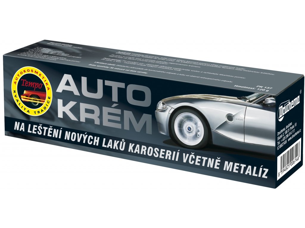 Kvalitní neabrazivní lehce roztíratelný krém, k leštění a konzervaci laků karoserií zejména nových, včetně metalíz. Je vyroben z přírodních a syntetických tvrdých vosků, které dodávají ošetřené karoserii vysoký a trvanlivý lesk. Vodoodpudivost a konzervační schopnost voskového fi lmu na karoserii zvyšuje přísada silikonového oleje. Používá se také jako udržovací prostředek po použití Tempo Pasty. Návod k použití: Konzervační Autokrém nanášejte na umytou, ještě mírně vlhkou karoserii pomocí vlhké např. molitanové houby. Krouživými pohyby rozetřete do tenké vrstvy. Po krátkém zaschnutí přeleštěte lešticí utěrkou nebo elektrickou leštičkou.Doplňkové parametry