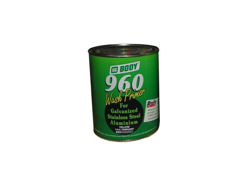 2K průhledný světle žlutý, dvousložkový reaktivní základ, zvláště vhodný, na hliníkové, nerez a pozinkované plechy. Tuží se tužidlem na kysličníkovém základu BODY 960 ACTIVATOR v poměru 1:1. Nanáší se v, jedné vrstvě silné přibližně 10 mikrometrů a schne přibližně 10 minut., Je schopný příjmout všechny druhy dvousložkových akrylátových plničů a, barev. Nelze na ně použít polyesterové matriály, protože na něm, neusychají (je to možné pouze tehdy, použije-li se jako mezivrstva, akrylátový plnič BODY 3+1, 4+1, 5+1), Je vhodný i na nezoxidovaný pozinkovaný plech. - Odstín: transparentně žlutá - Tuží se tužidlem BODY 960 ACTIVATOR v poměru 1:1 - Schnutí 10 minut při 20 stupních Celsia Pracovní postup: 1) Holý povrch důkladně očistit, odmastit antisilikonem. 2) Natužit potřebné množství základu BODY 960 tužidlem BODY 960 ACTIVATOR v poměru 1:1. Dobře promíchat. Nastříkat jednu vrstvu. Jedna vrstva suchého filmu o síle 10 µm je dostatečná jak k vytvoření antikorozní ochrany, tak i základu pod další povrchovou úpravu. 3) Po uschnutí jej můžeme bez broušení přestříkat jakýmkoliv lakovacím systémem. V případě potřeby tmelení polyesterovými tmely je zapotřebí určené místo nejdříve přestříkat akrylátovým plničem 3+1, 4+1 nebo 5+1.Doplňkové parametry