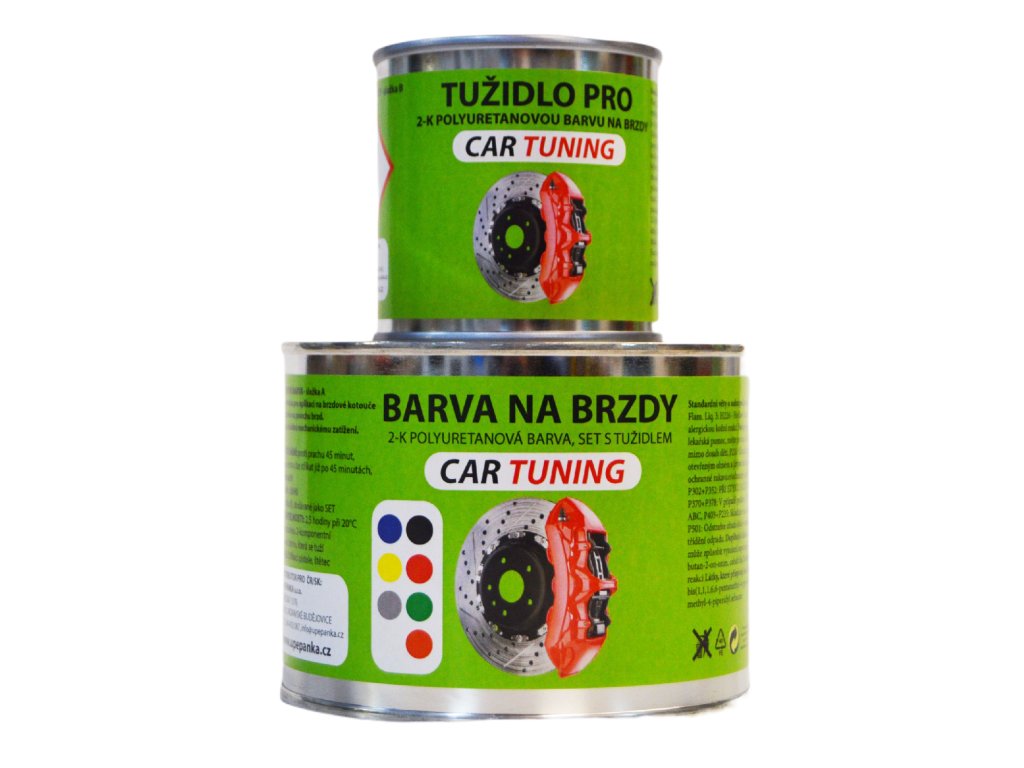 Kvalitní polyuretanová dvousložková barva na brzdové bubny a třmeny v plechovce od značky CARTUNING a v sadě se širokým příslušenstvím pro aplikaci. V nabídce v několika exkluzivních odstínech, které dodá vašemu vozu závodní vzhled. Tato barva je teplotně odolná a vhodná pro mechanicky namáhané místa. Toto množství vystačí na 4 kusy brzdových třmenů případně na přední třmeny a zadní bubny.Výhody: