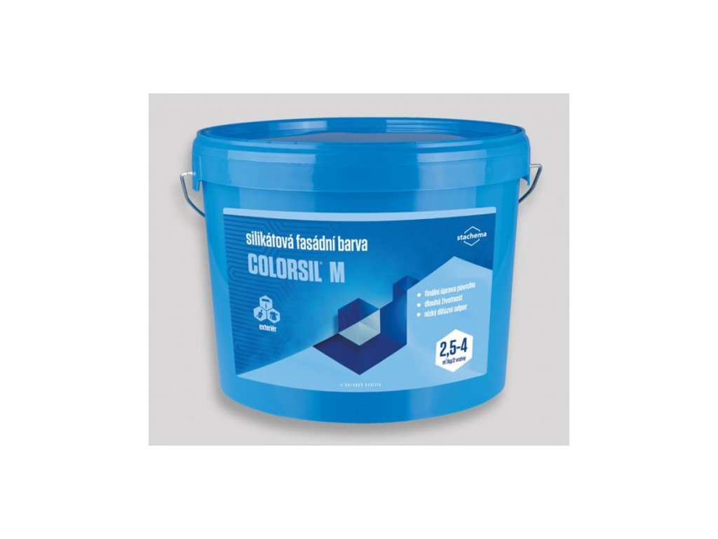 COLORSIL M je fasádní barva pro finální povrchovou úpravu všech vápenných, vápenno-cementových, cementových a sanačních omítek a štuků. Dlouhá životnost, přírodní vzhled a další vlastnosti, jako nízký difúzní odpor pro vodní páry, jí předurčují pro užití při sanaci starých a památkových objektů. Je vhodná také pro ošetření pískovcových a betonových podkladů a renovaci starých minerálních podkladů. Nelze použít na umělé hmoty, nevyzrálé omítky, omítky s obsahem solí a obsahem syntetických polymerů a biologicky napadené povrchy.Příprava podkladu