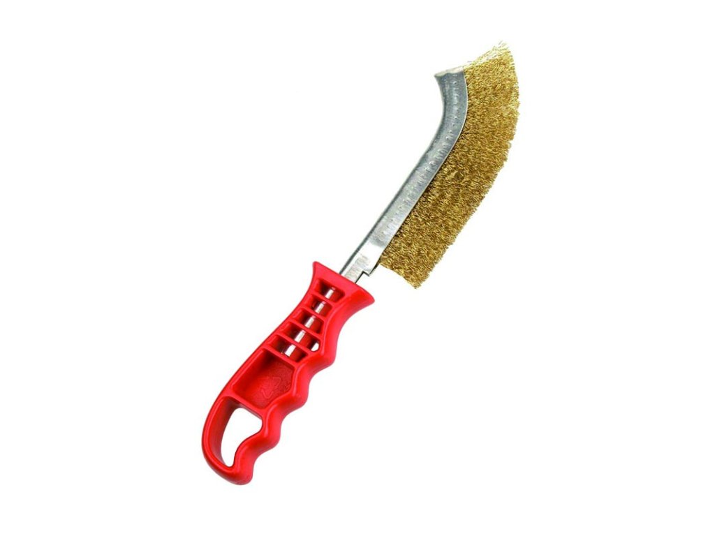 Ocelový kartáč k odrezování a čištění podkladů. Je to zahnutý kartáč, zvlněný ocelový drát s mosaznou úpravou o průměru 0,3mm. Otvor v umělohmotném držadlu nám umožní kartáč zavěsit.Doplňkové parametry