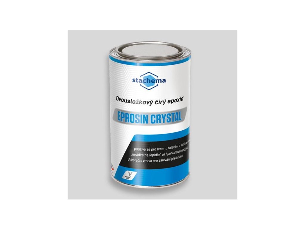 Dvousložkový čirý epoxid se dodává v setu s tvrdidlem (složky A+B). Používá se pro lepení, zalévání a laminaci například jako „neviditelné lepidlo“ ve šperkařství nebo jako dekorační vrstva pro zalévání předmětů. EPROSIN® CRYSTAL ani natužená směs se nesmí ředit. Lze používat jako zalévací nebo stěrková hmota pro přípravu dekoračních povrchů stolů, podlah apod. EPROSIN® CRYSTAL je aditivován přípravky pro zlepšení rozlivu, odpěnění a přípravky pro pomalé žloutnutí kompozice.Při zalévání různých druhů dekoračních předmětů jako jsou skleněné střepy, keramika, litina, flitry, obrázky a podobně je potřeba vždy provést vlastní praktickou zkoušku spotřeby.