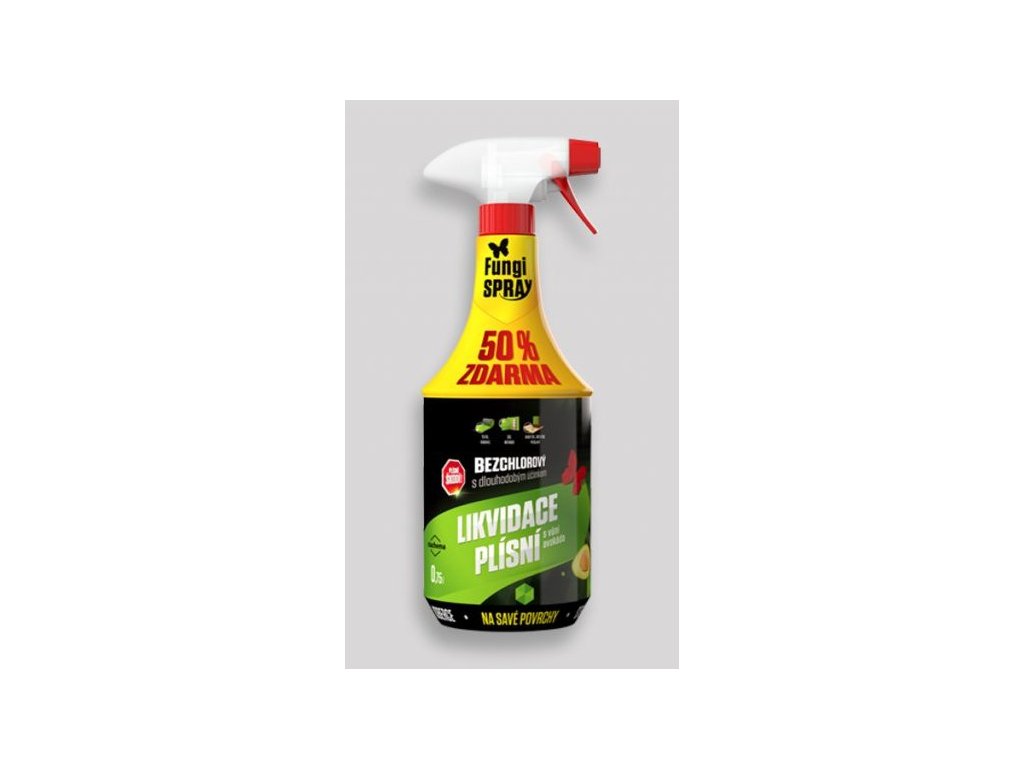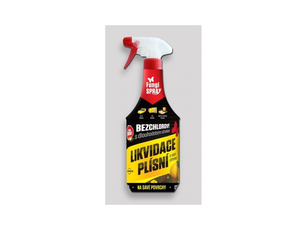 Plíseň před aplikací neodstraňujte! Napadená místa postříkejte ze vzdálenosti cca 10 cm a po 24 hodinách působení plíseň za mokra mechanicky odstraňte (kartáčem nebo hadrem namočeným v tomto přípravku). Při silném napadení plísní je nutno postup opakovat. Při kontaktu s lakovanými povrchy nutno předem odzkoušet na malém, případně skrytém místě. Na očištěný, vydezinfikovaný a suchý povrch stavebních materiálů aplikujte protiplísňový přípravek FungiSAN bezchlorový s preventivním účinkem proti plísním, výrobce STACHEMA CZ.