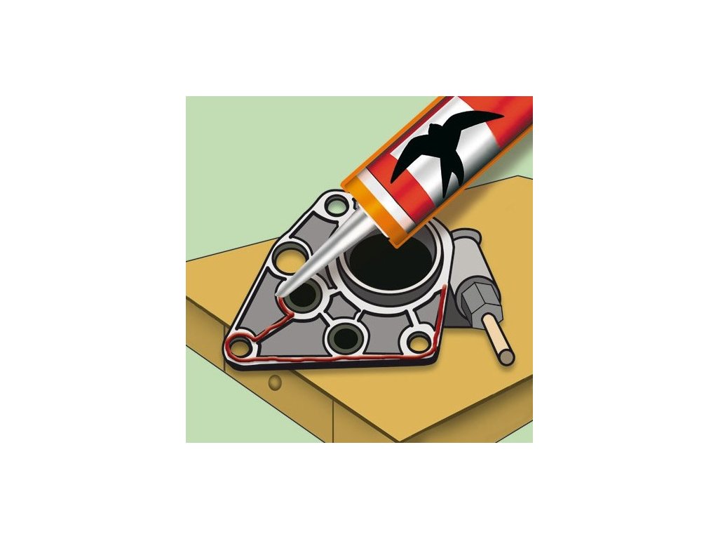 Pro těsnění v automobilovém průmyslu a ve strojírenství. Těsnění motorů, převodovek a olejových van. Pružné těsnění horkovzdušných rozvodů, sušiček, žehliček a praček. Tmelení kotlových přírub, přírub vysokoteplotních rozvodů vody, dvířek, límců, průmyslových pecí. Odolává ropným produktům, vynikající přilnavost k nesavým podkladům.Charakteristika: