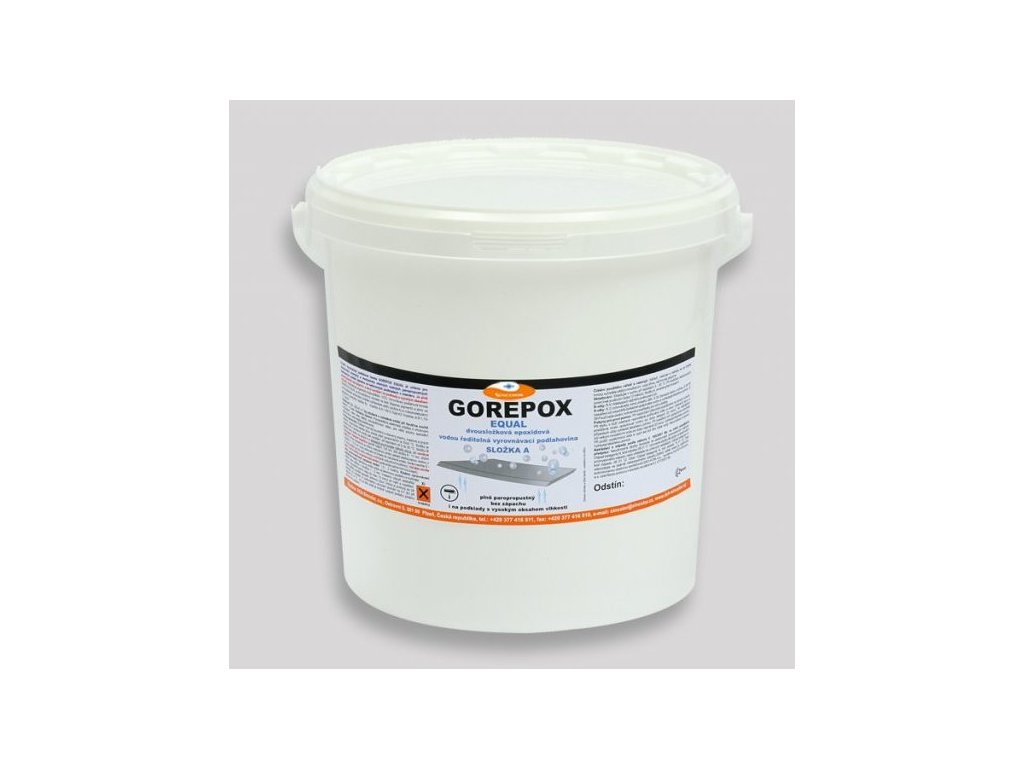 Vodou ředitelná dvousložková epoxidová samonivelační podlahová hmota pro podlahy s běžnou až střední zátěží, např. civilní výstavba, garáže, sklady, průmyslové haly, potravinářské provozy. Gorepox Equal lze aplikovat v tloušťkách 1 – 2 mm. Před použitím doporučujeme podklad penetrovat nátěrem Gorepox penetrace. Má nízkou úroveň zápachu, neobsahuje těkavé organické látky (VOC). Hmotu lze nanášet na vlhké podklady, vyzrálý beton, čerstvý beton ve stáří 24 hodin.POUŽITÍ: