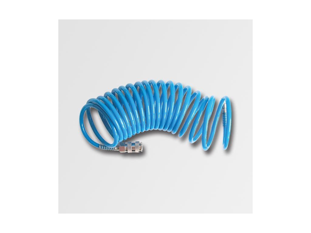 Hadice na kompresor spirálová osazená rychlospojkami pro rychlou a snadnou montáž. Vhodná pro připojení ofukovací pistole a stříkací techniky. Velmi pružný materiál odolný proti prasknutí či zlomení. Spirálový tvar je skladný a praktický při práci. Maximální pracovní tlak hadice je 10 bar. Pružný materiál PU odolný proti prasknutí.Doplňkové parametry