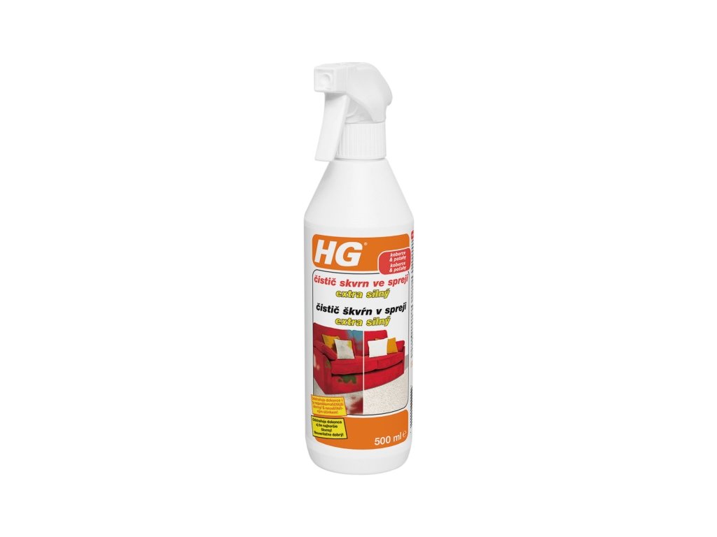 Přípravek HG extra silný čistič skvrn ve spreji je obohacen aktivním kyslíkem, který mu umožňuje odstraňovat dokonce i ty nejvytrvalejší skvrny, jako např. červené víno, káva, čokoláda, omáčka, rtěnka,krém na boty, ovocná šťáva, tuk atd. z textilu včetně koberců, nábytku a čalounění automobilu. Složení s aktivním kyslíkem znamená, že žádným problémem nejsou dokonce ani skvrny, které pronikly nejhlouběji do vláken. Přípravek HG extra silný čistič skvrn ve spreji je vhodný téměř pro všechny typy vláken. Návod k použití: Povrch určený k očištění nastříkejte a nechte několik minut působit. Uvolněnou nečistotu odstraňte čistým,nasákavým hadříkem (např.froté ručníkem).Postup popřípadě zopakujte.Doplňkové parametry