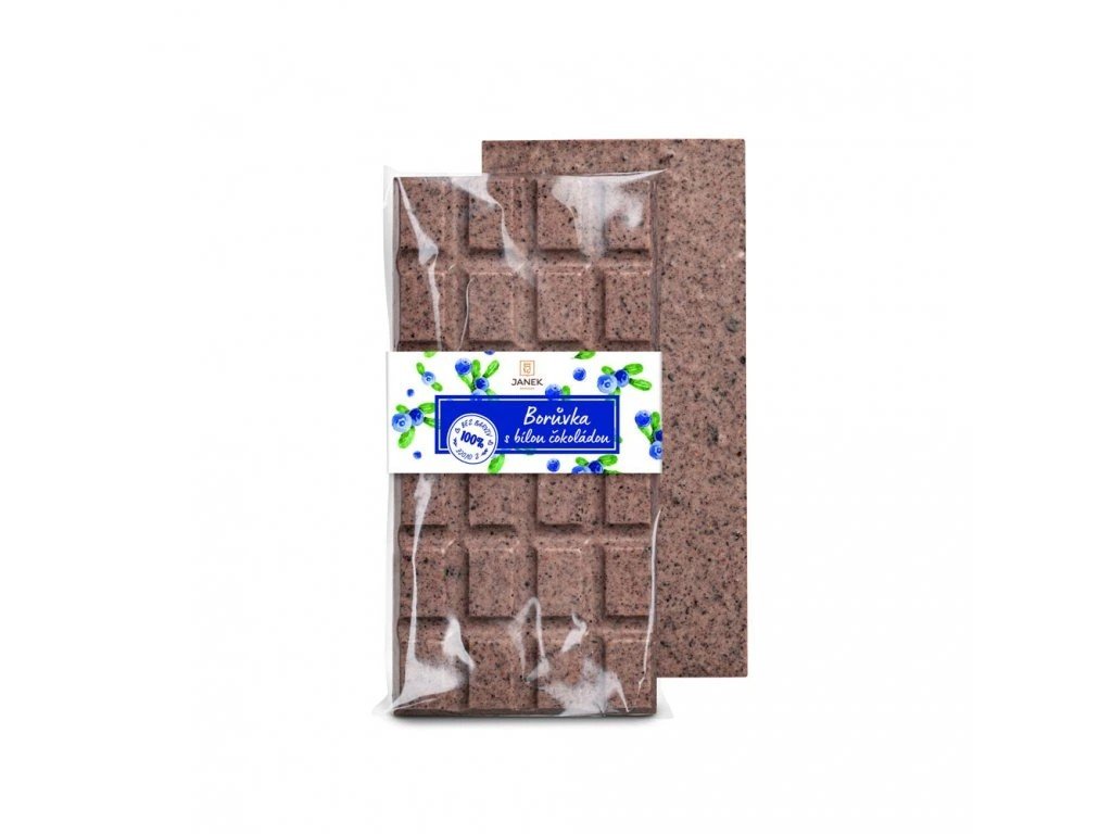 Lahodná bílá čokoláda a příjemná kyselá chuť borůvek vytvoří letní chuť v ústech.Složení: kakaové máslo 31,1 %, sušené plnotučné mléko, drcená lyofilizované borůvky (10%), cukr, emulgátor: sójový lecitin, aroma: přírodní vanilka Hmotnost: 85g Minimální trvanlivost: 9 měsíců Skladujte v suchu a temnu při teplotách do 22°C. Chraňte před přímým slunečním zářením.Doplňkové parametry