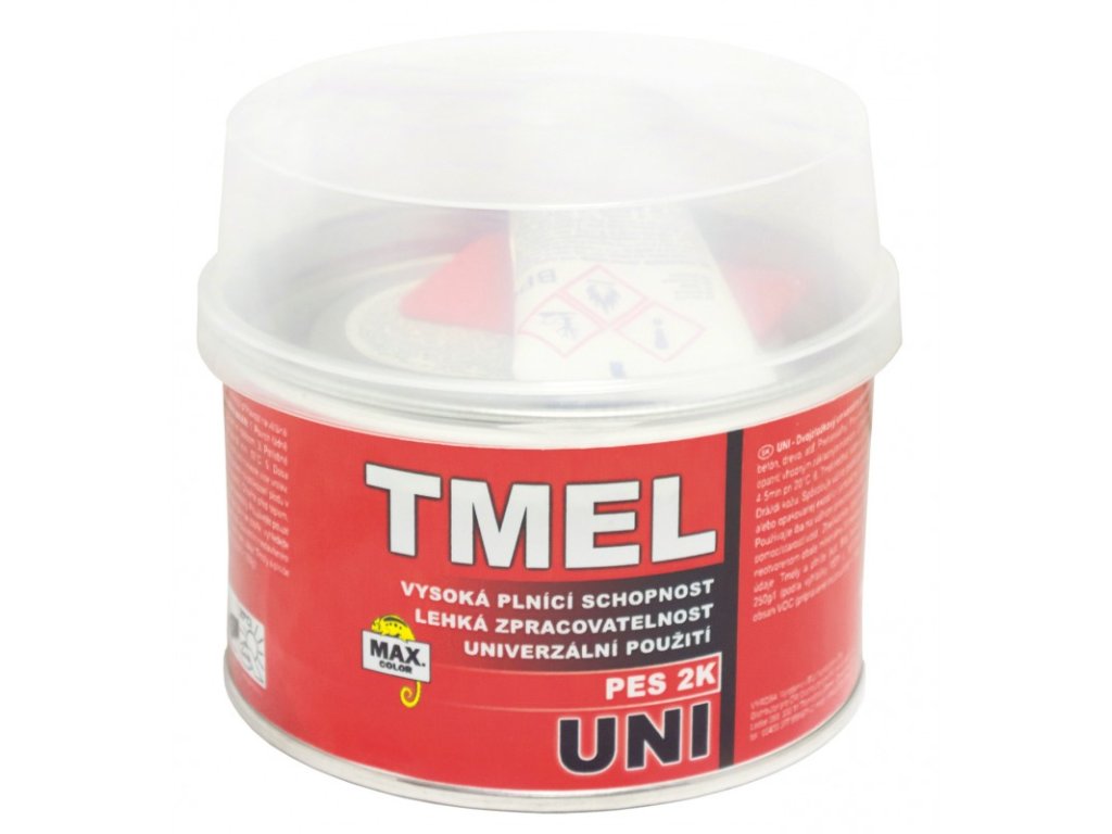 Dvousložkový univerzální polyesterový tmel určený na tmelení středních a větších nerovností, vynikající přilnavost na většině povrchů, především na kov, ocel, kámen, beton, dřevo a podobné materiály.- Dodávané i s tužidlem ve velikosti balení 0,5kg (485g+8g) nebo 2kg (1960g+40g)