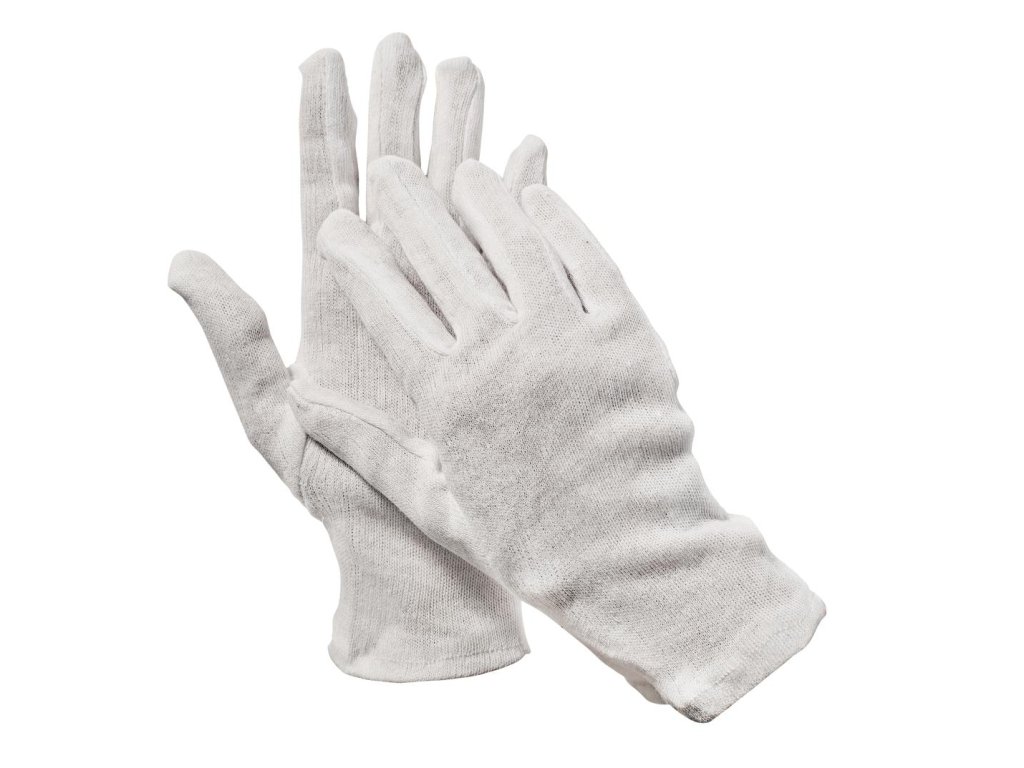 Rukavice bez manžety šité z jemného běleného úpletu podle střihu fourchette.Doplňkové parametry
