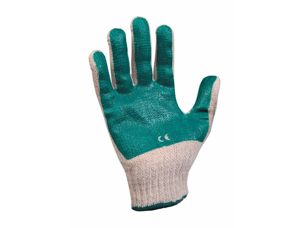 Pletené bezešvé bavlněné různobarevné rukavice, polomáčené v barevném PVC v dlani a na prstech, s pružnou manžetou. Odstín modré 9" velikost.Doplňkové parametry