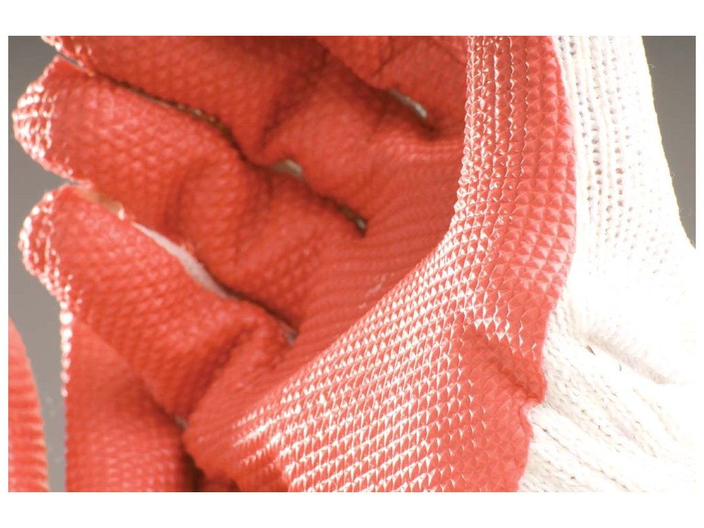 Pletené bezešvé bavlněné různobarevné rukavice, polomáčené v barevném PVC v dlani a na prstech, s pružnou manžetou. Odstín Zelené 7" velikost.Doplňkové parametry