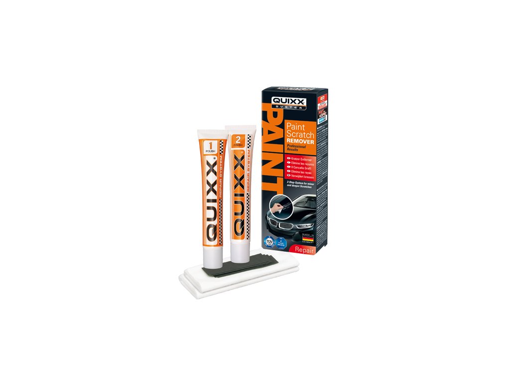 S Quixx repair systémem můžete sami rychle a natrvalo odstranit škrábance a barevné stopy ze všech lakovaných povrchů Vašeho vozidla. Quixx Vám může v mnoha případech ušetřit peníze za nalakování v servisu. Je jediný odstraňovač škrábanců, se kterým člověk může prokazatelně odstranit už i lehce viditelné škrábance od nehtů. Quixx je proslulý světový vítěz mezi odstraňovači škrábanců. Zvláštní PD technologie (plastic deformation technology) se stará o trvanlivé odstranění škrábanců. Škrábance se již znovu neobjeví ani po mnohačetném umytí vozidla. S Quixxem můžete také opticky významně vylepšit různé opravy provedené tužkou na opravu laku, pomáhá udržet hodnotu Vašeho vozidla a ušetřit výdaje za opravy. Videoukázka jak to funguje v praxi: Upozornění: Používejte Quixx repair system jen podle přiloženého návodu. Hodí se na všechny lesklé laky vozidel kromě matných laků.Doplňkové parametry