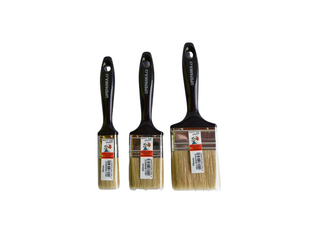 Souprava kvalitních štětců PEPÁNEK české výroby pro univerzální použití. Vhodné jsou na syntetické, epoxidové, polyuretanové, vodouředitelné a další typy nátěrových hmot. Vhodné jsou také na odstraňovače barev, olejů, lepidel a dalšího materiálů. Velikosti štětců v soupravě: 30mm(1"), 50mm(2"), 70mm(3") – Štětiny jsou mixované – Uchycení v bílém plechu – Umělohmotné držadlo VYROBENO V ČESKÉ REPUBLICEDoplňkové parametry