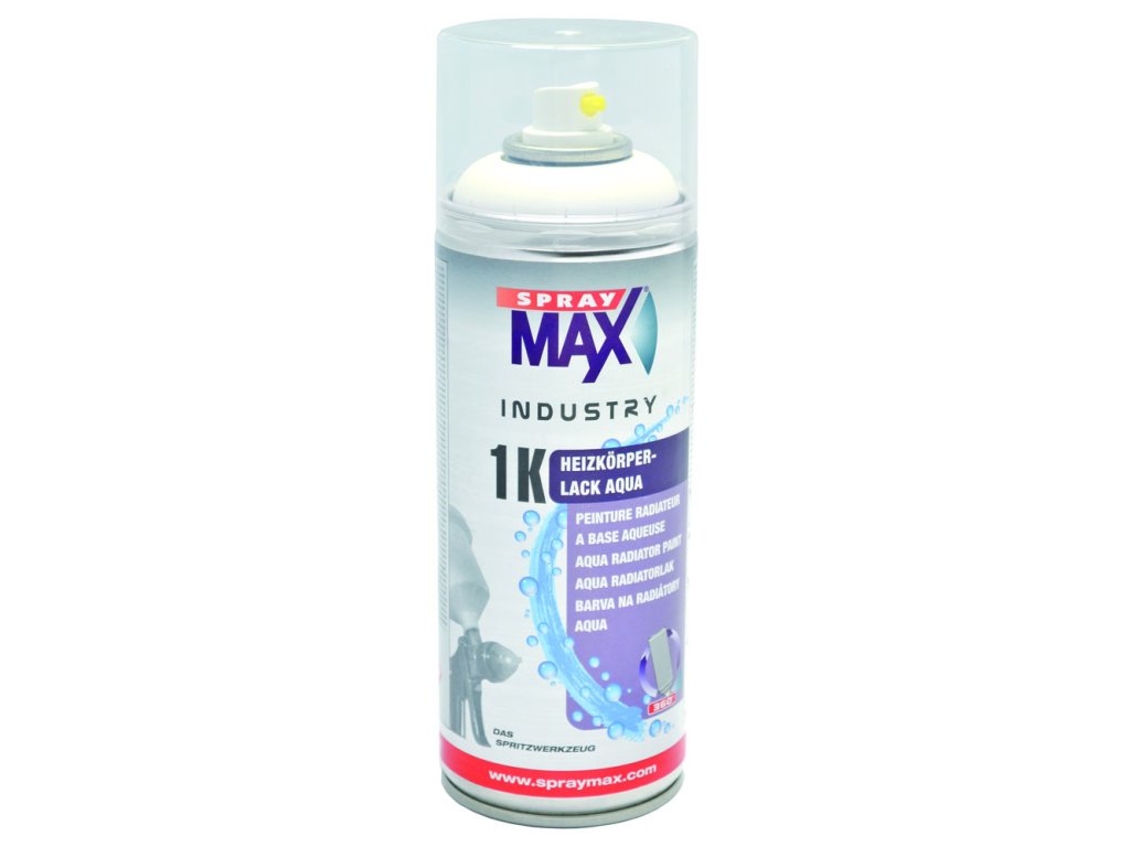 SPRAY MAX 1k vodní lak na radiátory je speciálně vyvinutý lak jak pro nové nástřiky, tak i pro opravné práce. Pro radiátory všech druhů, ale i pro nástřik teplovodních potrubí. Při výskytu koroze je nutné podklad ošetřit vhodným základem. Výhody: Velmi dobře kryjící Dobré krytí na hranách Výborný průběh zpracování Odolný žloutnutí a teplotám do 80C Možnost nanášení všemi směry Bez zápachuDoplňkové parametry