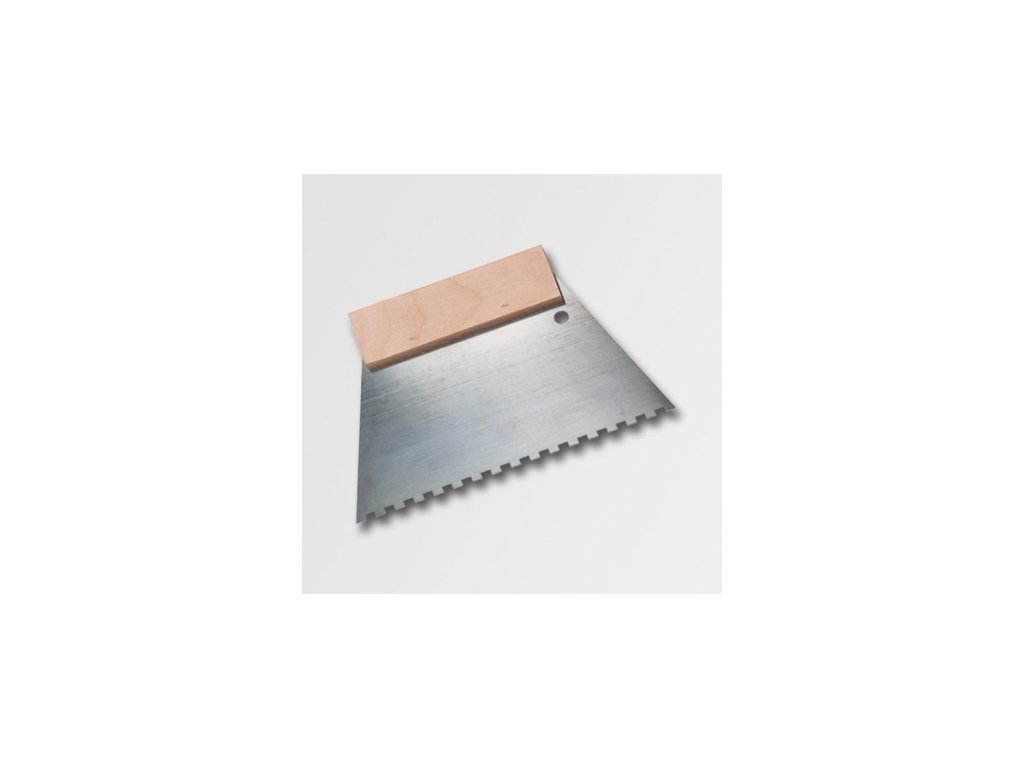 Stěrka zubatá se zuby B2 o šířce 250mm vhodná pro plošné nanášení lepidel a dalších podobných materálů.Doplňkové parametry