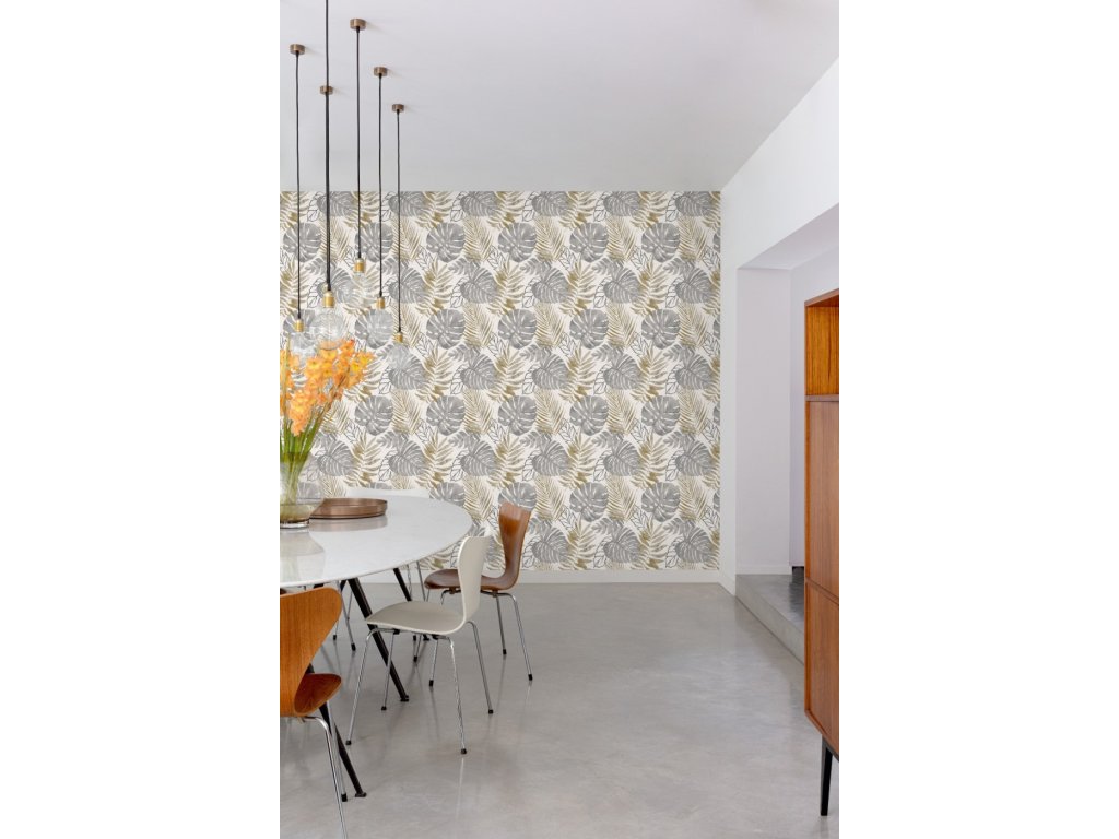 Tapeta GT 3302 vliesová s listy, Vavex 2022 Rozměry role: 0,53 m x 10,05 m Návaznost vzoru: 64 cm Color: šedá, okrová, smetanová Kolekce: Vavex 2022Doplňkové parametry