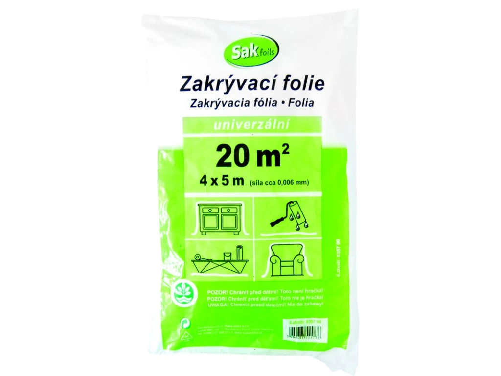 Zakrývací fólie 4x5m slabá 0,006 mm, pro krátkodobé zakrytí podlah, nábytku atd. v interiéru, skládaná, transparentníDoplňkové parametry