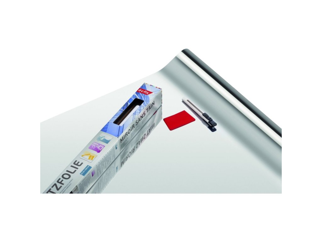 215-0004 Zrcadlová samolepicí fólie neprůhledná d-c-fix, 90 cm x 1,2 m Zrcadlová fólie je speciální samolepící fólie s výrazným zrcadlovým efektem. Zrcadlová fólie je tuhá folie opatřená krycí ochranou folií. Výsledný efekt zrcadlové fólie se nevyrovná klasickému zrcadlu, velmi záleží na podkladu, na který se lepí. Zrcadlová fólie má ale své výhody. Zrcadlová fólie je především nerozbitná, ohebná - pro tvorbu zaoblených ploch, polep sloupů atd. Svým výsledným efektem je výrazně dekorativní, prosvětluje a zvětšuje prostor. Samolepící fólie jsou připraveny k okamžité aplikaci.Doplňkové parametry